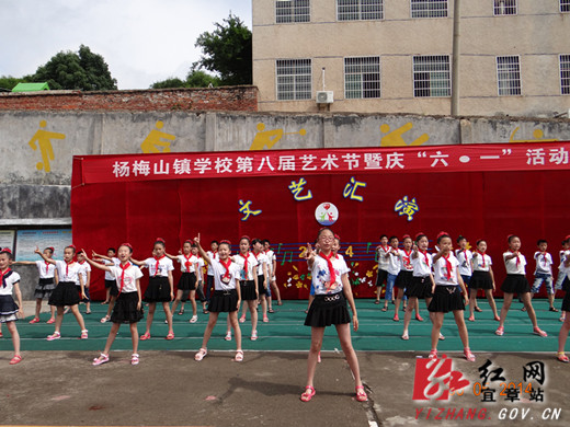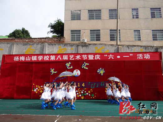 红网宜章站讯(通讯员 黄南生)2014年5月30日,杨梅山学校第八届艺术节暨庆六一活动隆重举行,由校舞蹈队、幼儿小朋友先后表演了各种舞蹈、声乐节目,接着小学13个班的学生进行了集体古诗韵律操表演比赛。学校特别邀请了镇党委政府、群众家长代表来观看演出,并在活动后请家长、群众向学校艺术活动提出专项建议,以利今后在校园文化建设活动中坚持群众路线,推出更多群众喜闻乐见的文艺节目。