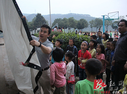 五岭乡是宜章县的“北大门”,太平里风电站也坐落在此,到了秋冬季节,风力尤其之大,给森林防火工作带来很大的困扰。沙坪小学共有566名学生,450余名住宿学生,晚上是学生的自习时间,露天电影吸引了大家的注意力,当影片定位在“森林防火”主题时,全体学生齐声地念出了这几个字。熊熊烈火燃烧、森林公安置身火海、直升飞机灭火等场景使孩子们为之激动和紧张,生动形象的电影受到孩子们的热烈欢迎。邓佳是该校6年级的学生,她说看了这个宣传片自己以后再也不会在外面玩火了,也会跟自己的爸爸妈妈还有朋友说不能在野外玩火。