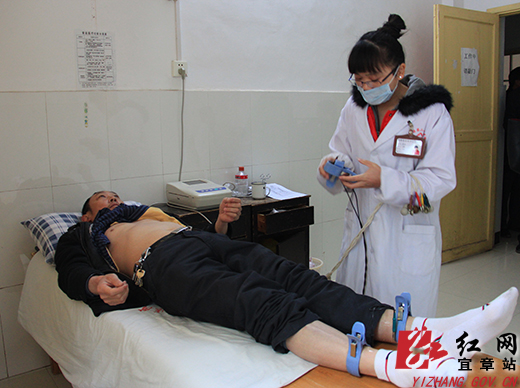 图为正在做心电图