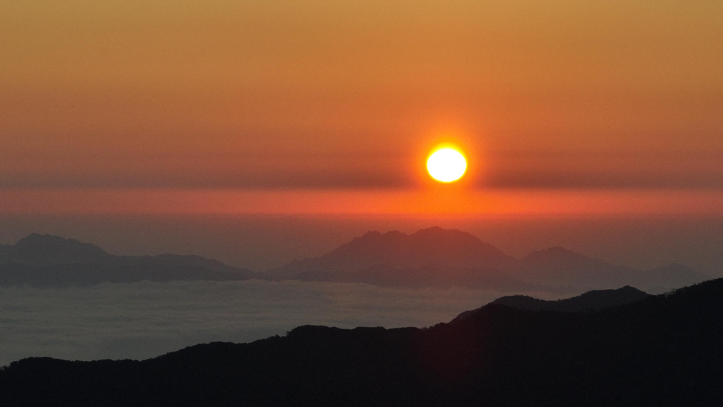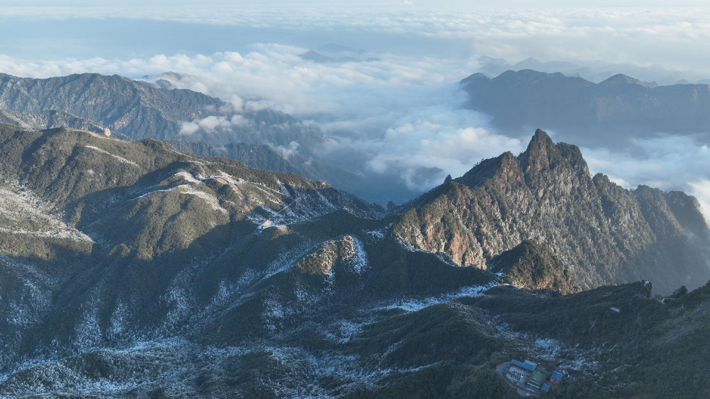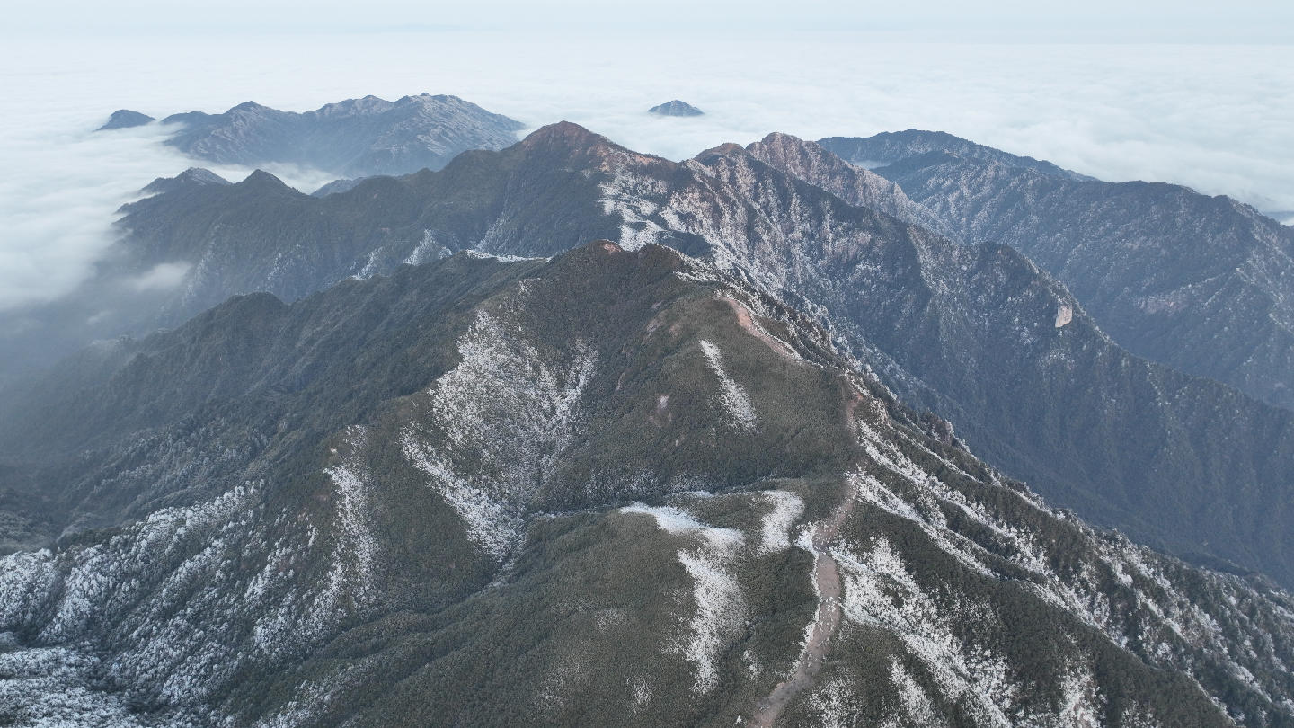 宜章新闻站讯(记者 邓文超)“一夜寒风起,万树琼花开”。受寒潮天气影响,元旦假期莽山迎来2026年首场云海雾凇景观,漫山林木凝霜挂凇,如大自然的精雕细琢之作,壮阔云海随风流转,如涛浪般在山谷中奔涌升腾,雾凇云海二者交相辉映,构成一幅壮丽又灵动的冬日山水画卷。