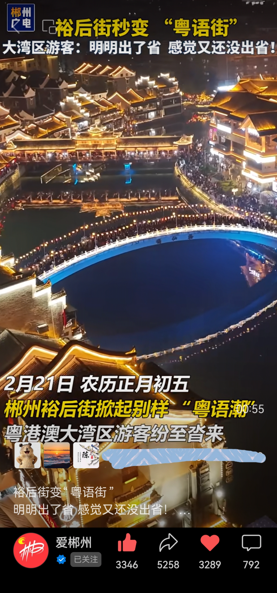 这个春节,郴州的街头巷尾,飘荡着浓郁的“广府年味”。依托广州地铁宣传、高铁运力保障,大湾区成为郴州核心客源地,来自广州、深圳、汕头等地的游客占比达82.8%,裕后街等景区被粤语“包场”。