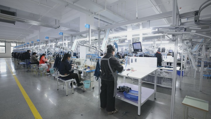 湖南圣菲达服饰有限公司新厂房生产线。(受访者供图)