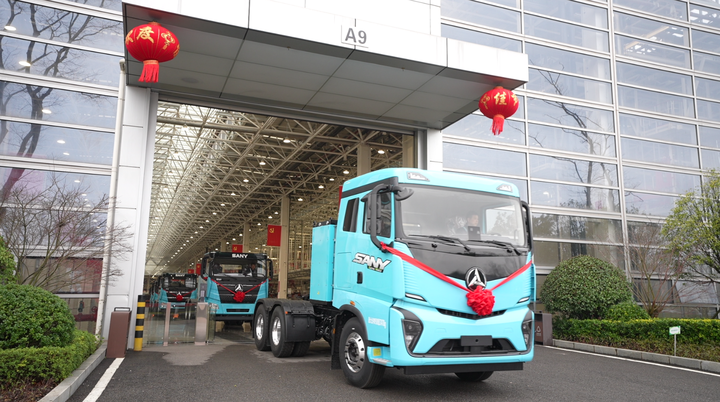 这是2月24日拍摄的三一智联重卡产业园列队下线的车辆。(受访者供图)