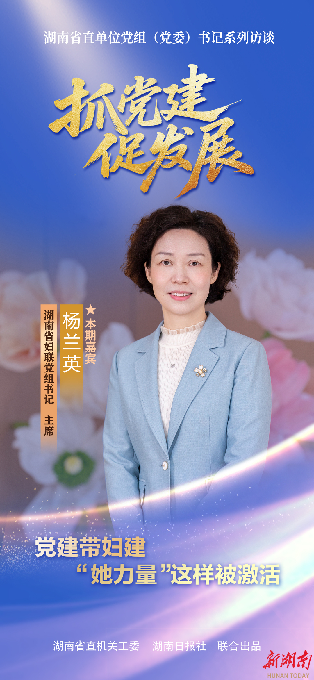 【主持人】观众朋友们,大家好!欢迎收看新年首期“抓党建 促发展”系列访谈。今天,我们来到湖南省妇女儿童活动中心,与您一同探寻“她力量”绽放背后的党建动能。非常荣幸邀请到省妇联党组书记、主席杨兰英。杨主席,您好!