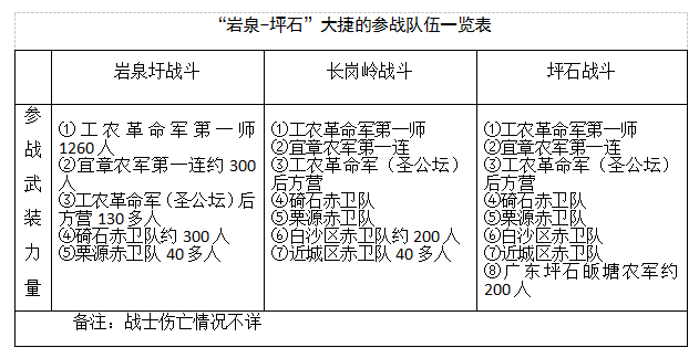 综上所述,在党史军史记载中,有坪石大捷之说,而未有“岩泉-坪石”大捷之名,这对于人民军队的历史是不准确的、有悖实事求是。经考证,这场战役两天打三仗,先有岩泉圩大捷,歼敌两个精锐团;后有长岗岭大捷,歼敌两个团;再有坪石大捷,击溃敌军一个团、俘虏一个团,捣毁了敌军师部和后方军械仓库;最惨烈的战斗是在岩泉圩、长岗岭;到坪石,战斗基本结束,因此,这场战役的全称应该是“岩泉-坪石”大捷,我们这方面的研究填补了一块空白。