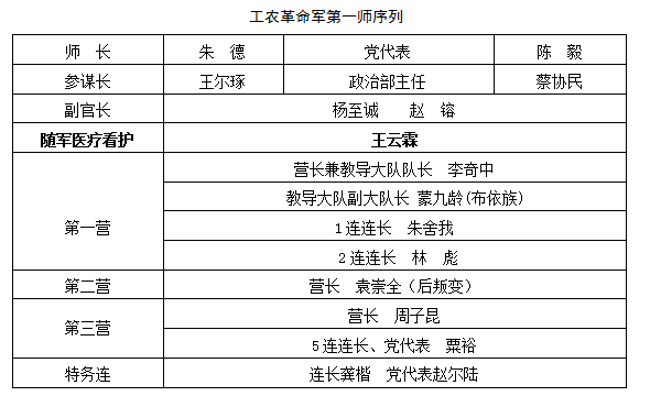 1、成立工农革命军第一师 。1928年1月13日上午,朱德在宜章县城大操坪(今为红色文化广场)主持召开群众大会,庄严宣布:把南昌起义带过来的这支部队,正式改编为工农革命军第一师,朱德任师长,陈毅任党代表,王尔琢任参谋长,蔡协民任政治部主任,并向王尔琢授予“工农革命军第一师”军旗,军旗为“斧头镰刀红旗”,全师1260人枪[9]。在这里,起义军第一次举起了“斧头镰刀红旗”。同时,将参加暴动的宜章农军,组建成宜章赤卫大队,胡少海任总指挥,萧语初任一分队长,戴贤才任二分队长,全队130余人、51支枪。