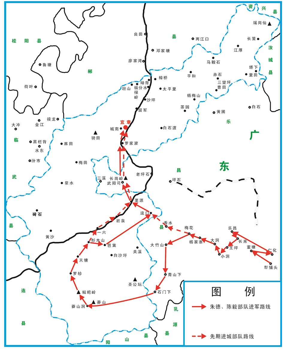 朱德、陈毅部队从广东韶关犁铺头进入宜章示意图