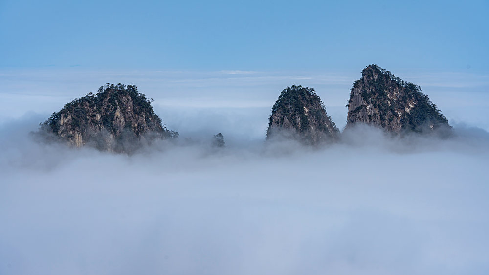伫立于莽山之颠向下俯瞰,云海缥缈、如梦似幻,云海时而像波涛汹涌的大海淹没山峰;时而流云奔涌,越过山峰如瀑布一般倾泻山谷间;云雾弥漫、云海翻腾,层层云雾萦绕在奇峰异石之间,如浓墨淡染的山水画卷。