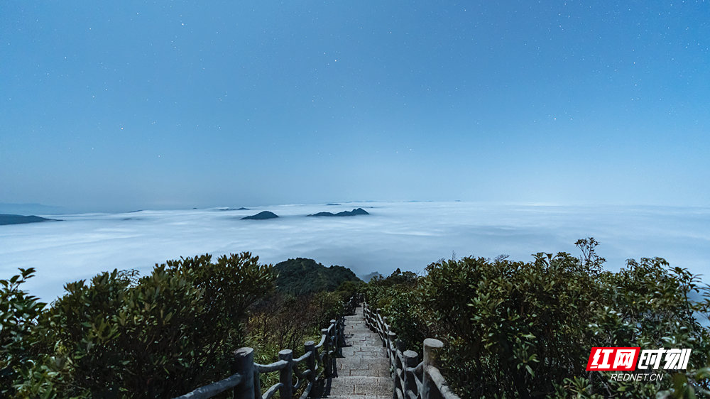 夜幕来临,蔚蓝天空星光点点,星辰仿佛抬手可摘,莽山美景在这一天中展现的淋漓尽致。