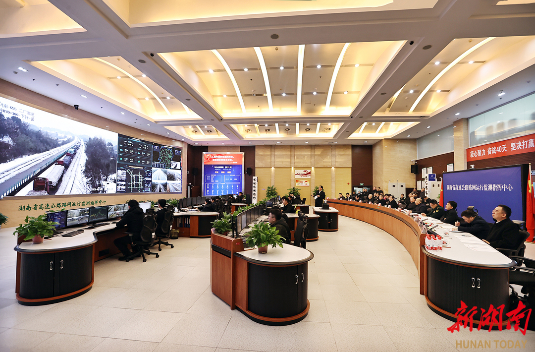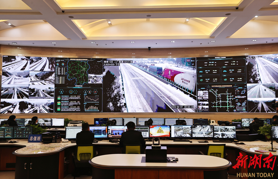 在高速公路路网运行监测指挥中心,毛伟明现场视频连线了G56高速(杭瑞高速常吉段)与G59高速(呼北高速官新段)交汇官庄枢纽互通、G55高速二广澧县至城头山段,察看雪情雨情、警力部署、保畅措施等。受本轮低温雨雪冰冻天气影响,湘西、张家界、常德、岳阳、益阳、长沙辖区宁韶段部分路面有积雪、结冰现象,郴州辖区汝郴段有大雾。全省373个收费站入口对所有车辆采取管制措施,G55二广、G56杭瑞、G4京港澳等14条高速公路管制或缓慢通行。连日来,各有关部门加强路网运行监测,加大抗冰除雪力量,高速交警全员上岗、武警总队积极驰援,使用机械设备7128个台班,全力消除低温雨雪冰冻天气对高速出行的影响。目前,全省高速公路总体运行可控,守住了安全生产底线,最大限度地减少灾害天气对群众出行回乡的影响,网上舆情健康有序、客观公正。
