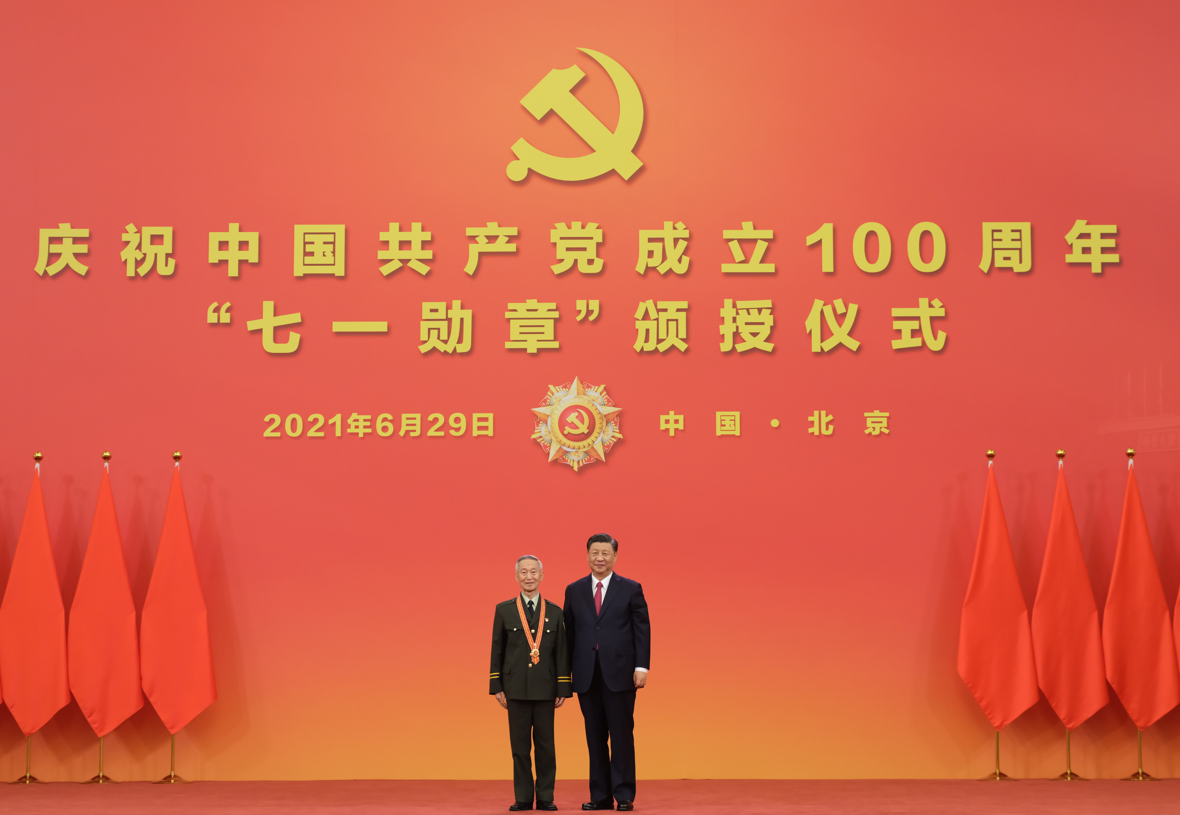 2021年6月29日,习近平总书记向“七一勋章”获得者崔道植颁授勋章。新华社记者 李学仁 摄