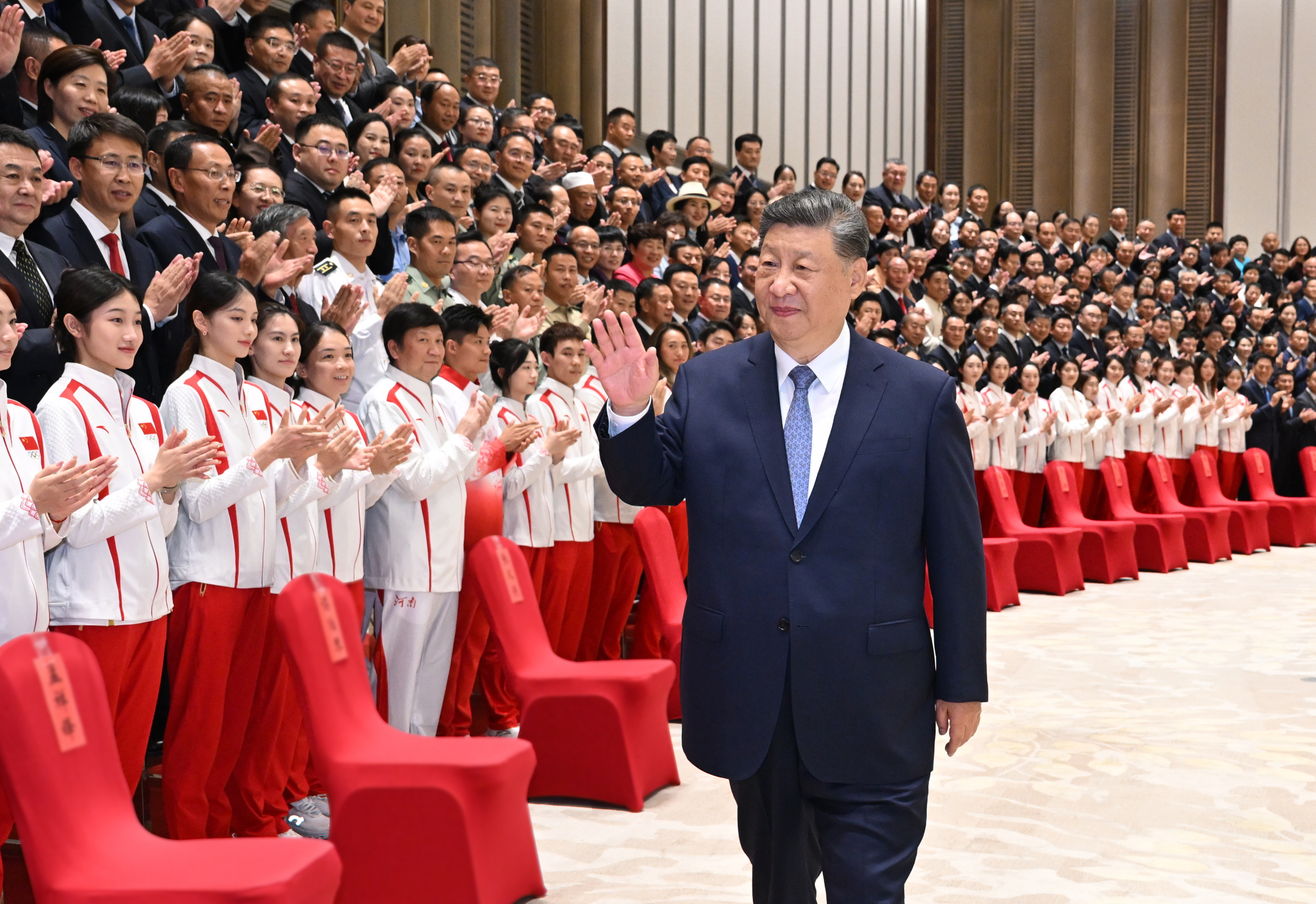 新华社广州11月9日电 在第十五届全国运动会即将开幕之际,中共中央总书记、国家主席、中央军委主席习近平9日下午在广州亲切接见全国群众体育先进单位、先进个人代表和全国体育系统先进集体、先进个人代表,向他们表示热烈祝贺,勉励他们奋力拼搏、再创佳绩,为建设体育强国作出新贡献。