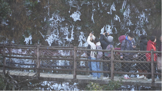 宜章新闻网站讯(记者 李永东 艾学杰)近期气温骤降,位于南岭山脉最南端的莽山旅游区频现壮美雾凇景观,在海拔1700米高的天台山景点,山峦被冰雪覆盖,树木裹上了晶莹剔透的冰棱,云雾在山谷中翻滚升腾,在冬日暖阳的照耀下,冰雪慢慢消融,如诗如画的冬日雪景吸引众多游客拍照打卡。